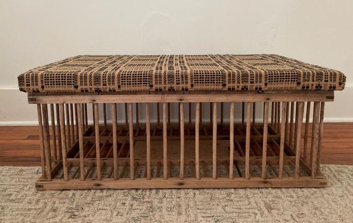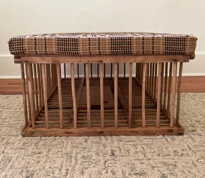 Versatile Cocktail Ottoman 24”x36”x 14.5”H Place a serving tray or rest your feet on this vintage farm cage topped with a new dense foam cushion hand-upholstered in 100% cotton textile from India. $750